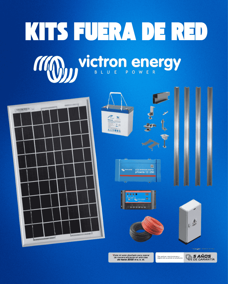 Logra la independencia energética con nuestros kits solares fuera de la red, equipados con la calidad y confiabilidad de Victron Energy. Ideales para hogares, negocios y proyectos en ubicaciones remotas. ¡Consulta nuestros modelos!
